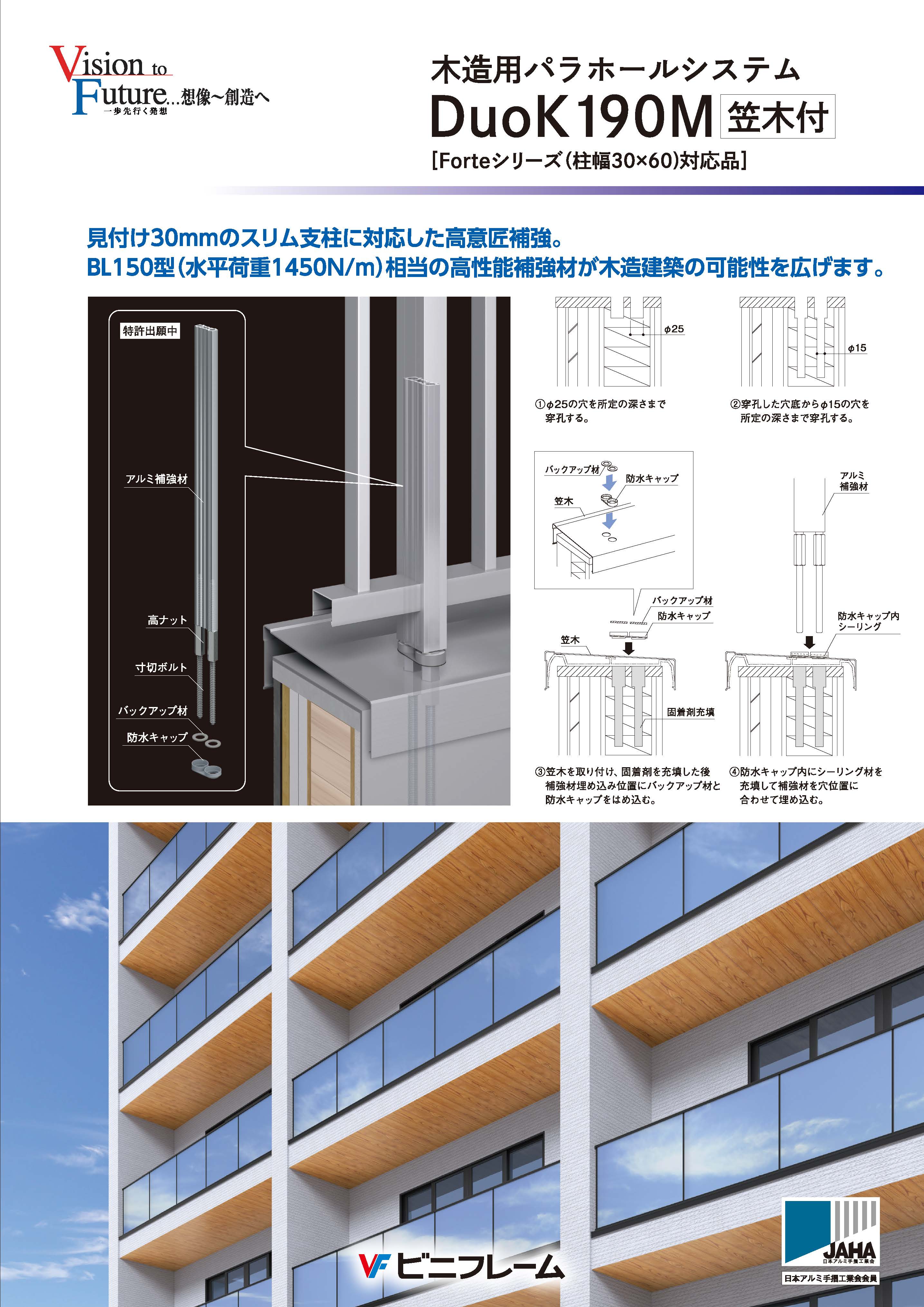 ニューストピックス 【新製品】「木造用パラホールシステムDuoK190M(笠木付)」を掲載しました 2025/10/20 お知らせ 中高層や大規模木造建築に対応した高性能補強材 「木造用パラホールシステムDuoK190M(笠木付)」 のカタログを掲載しました。 関連リンク 木造用パラホールシステムDuoK190M(笠木付) すべてを表示 次ページ »